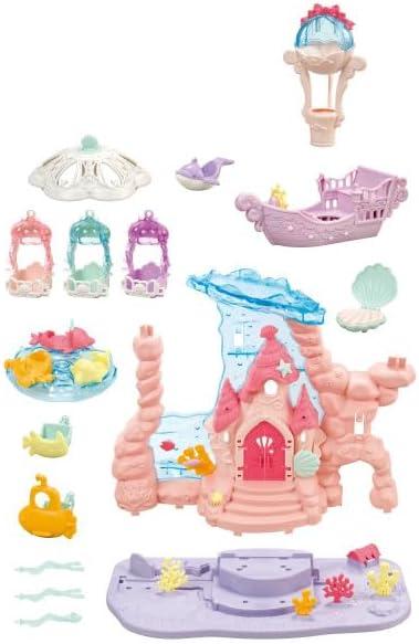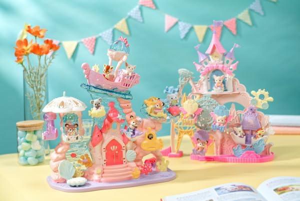 This set contains a sea-themed amusement park, and the Deer baby and Fennec Fox baby dressed in mermaid costumes. Includes a Mermaid Castle, Aqua-Go-Round, Jellyfish Swings, and many more rides for baby figures to ride in! Use the Swim Holders to make it look like the babies and Floating Dolphin are swimming! The Dream Ship can be removed and played with separately. Suitable for use as a display piece, with room for over 50 baby figures.