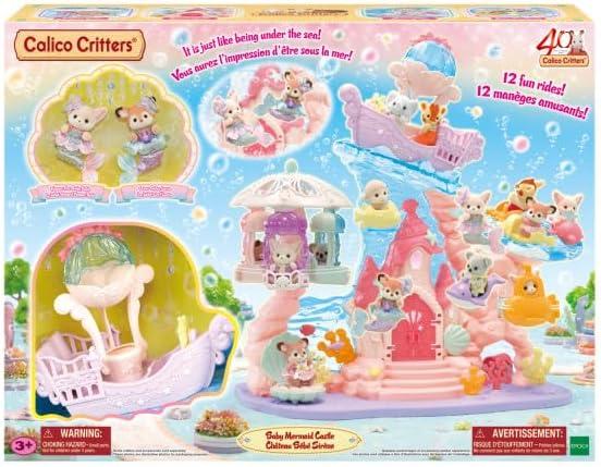 Includes a Mermaid Castle, Aqua-Go-Round, Jellyfish Swings, and many more rides for baby figures to ride in!
