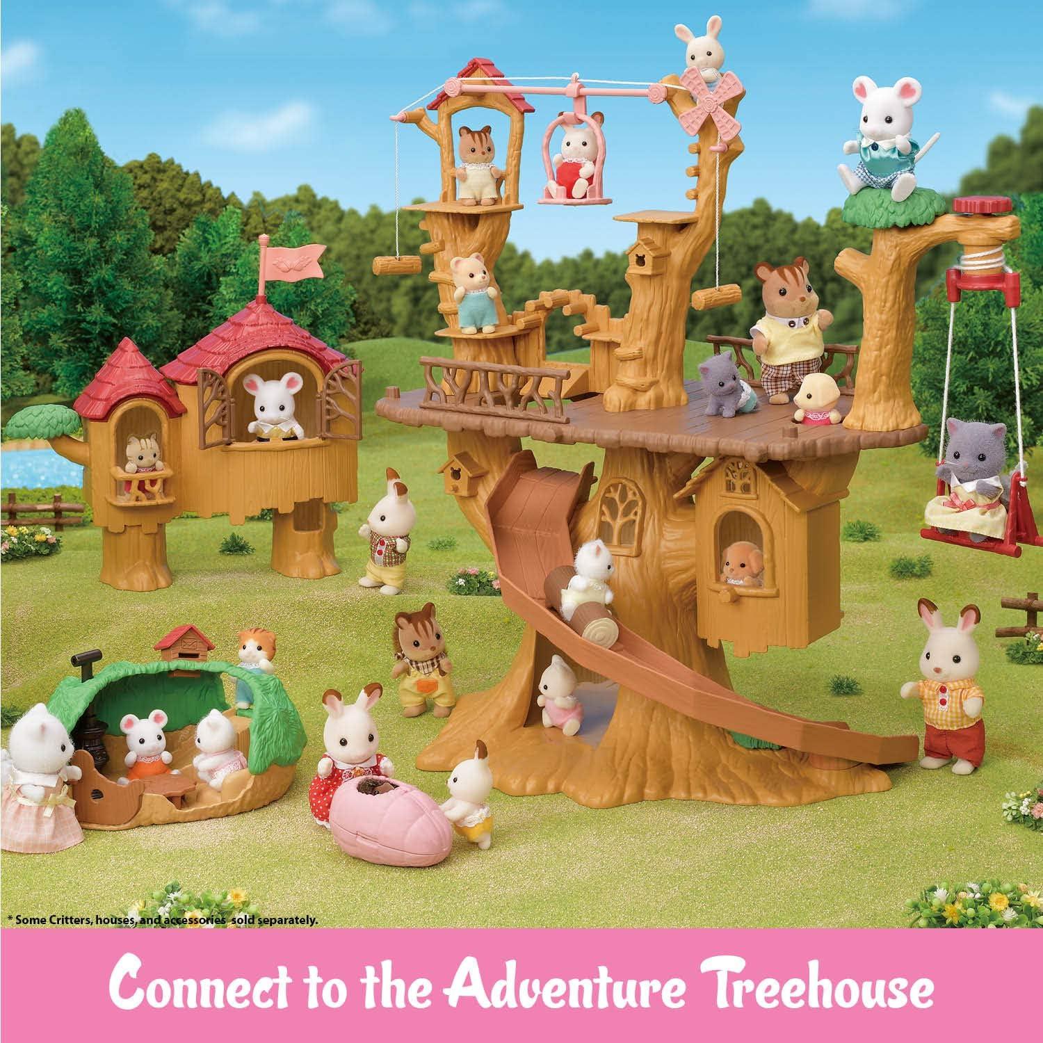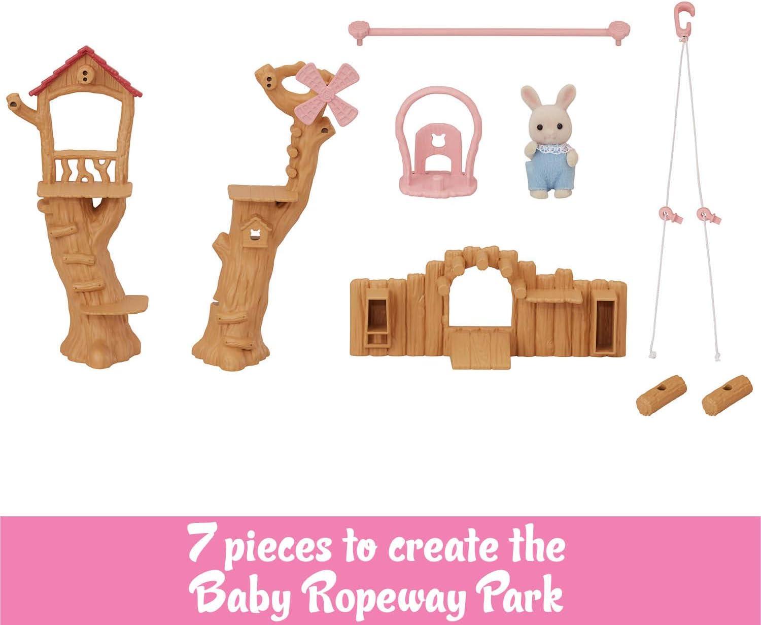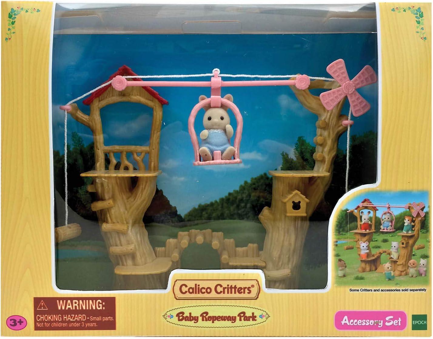 Baby Tree House includes a hammock, slide, and swing, so children can help babies play. They can also be posed to peek out through the leaves. Set it up with Baby Castle Nursery to create a large school scene complete with a garden (sold separately). Includes Baby Tree House, Tree Trunk, Branch, Swing, Swing Set Strings, Slide, Table, Chair, Walnut Squirrel Baby (a total of 9 pieces).